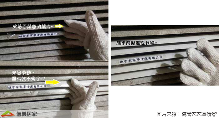 清潔百葉窗葉片得一片一片擦拭、非常麻煩!不妨戴上橡膠手套、再套上粗棉手套,在指尖沾一點稀釋過的清潔劑,用手指夾住百葉窗葉片來清潔,透過左右滑動、加快清潔的速度。