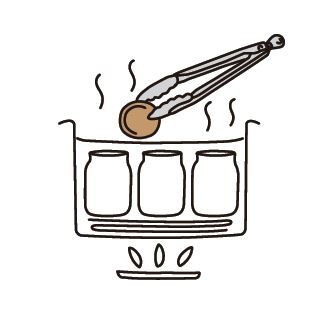 在大鍋子底部鋪上毛巾,將瓶罐擺放其上,加入一些水,以中火慢煮直到沸騰,大約煮十分鐘後就能取出。取出的瓶罐必須擺在乾淨的毛巾上,瓶口朝下放置、自然風乾。蓋子和橡皮密封條長時間放在熱水裡會變形,所以煮約二十秒就要取出。