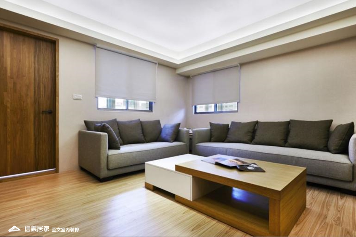 設計師打造簡約無壓的空間,低檯度的沙發讓視野延伸。使用無毒環保的系統板料,也是設計師貼心的選擇:因為工作不僅僅是工作,是生活樂趣的來源。