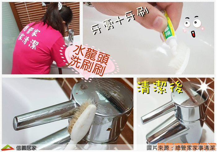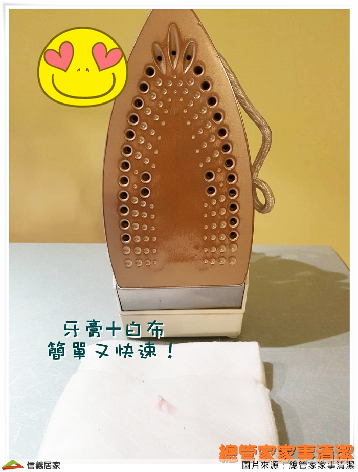 熨斗久用後、金屬表面會有淡淡的一層汙垢,水龍頭長期使用也會產生水垢和其它髒污,只要擠一點牙膏、再以牙刷再加上乾布清潔,即能亮麗如新!