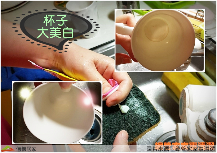 茶杯、咖啡杯特別容易留下污漬,用牙膏來對付咖啡、茶垢也沒問題,磨砂效果可輕鬆去除污垢。