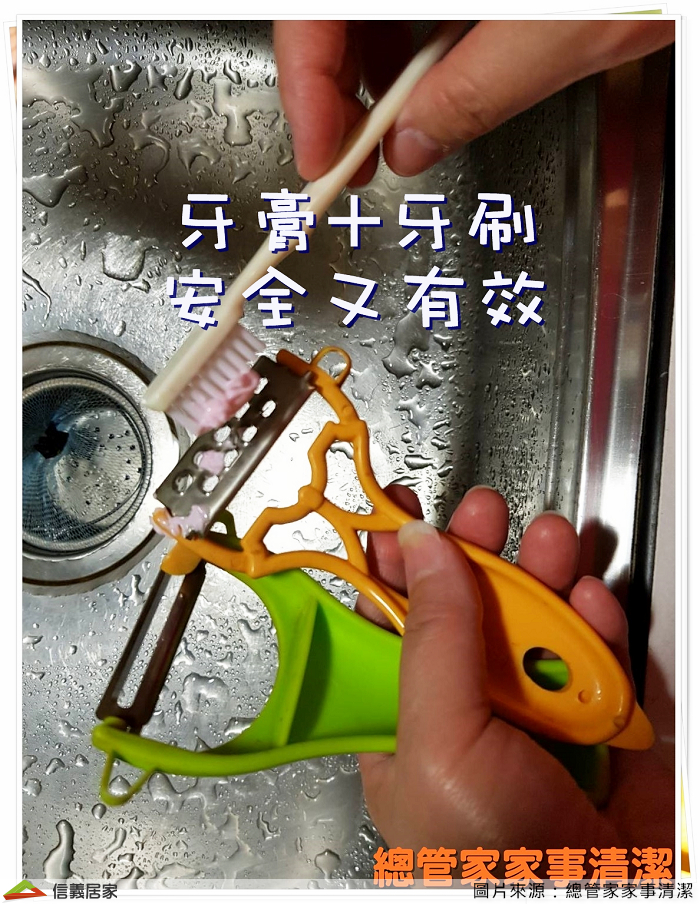 削皮刀等家家必備的刀具,清潔上卻十分麻煩,因為一不小心可能會割傷手。不妨在牙刷上擠一些牙膏,即可安全地完成清潔。