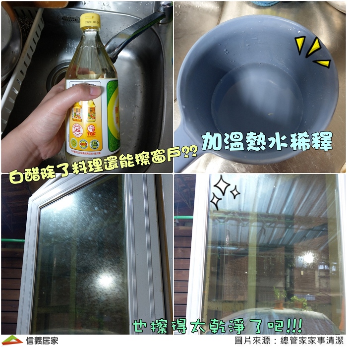 家中常備的白醋,其實也是居家清潔的神器!將白醋和溫水以1:5的比例調和,就成了環保清潔液;除了可以將玻璃擦得乾乾淨淨,也可以清除磁磚上的污垢。