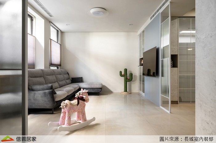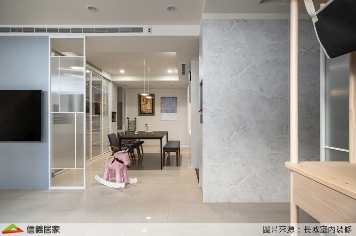 三代同堂又有愛喵的家庭,可以是什麼型態?用大量玻璃元素加上整體色系搭配,打造能開放也能獨立的彈性空間,保留光線溫馨舒適。