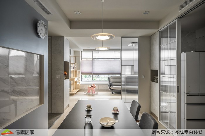 ▲家庭的成員從原本的兩人變成四人,小孩漸漸長大該有自己的房間,趁這個機會,屋主想好好將原本「匠氣」的風格重新洗刷成舒適空間。至文規劃拆去原有厚重木作屏風,將屏風瘦身,以半透視的玻璃去做變化,讓玄關空間不再擁擠。