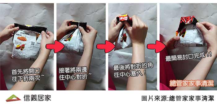 對於平常愛吃餅乾零食的人,有時想慢慢吃,但是身邊沒有橡皮筋之類的工具一定很困惱!只要使用下方的步驟,讓你以後都不再需要橡皮筋,餅乾零食也不會受潮不好吃。