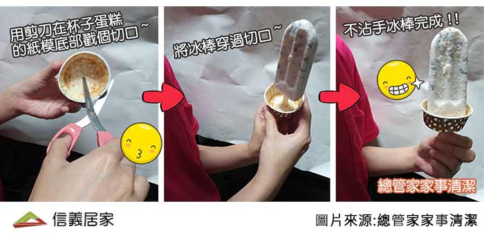 一到了夏天大家都喜歡去買冰吃,但是買冰棒時又會顧慮到手會吃的黏黏的,此時杯子蛋糕的紙模就能解除這個顧慮了,讓你安心享用可口的冰棒。