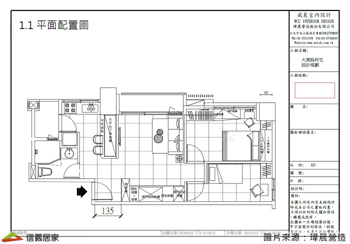 此案件空間雖然不大,但因格局相當方正,不需要調整隔間,只要規劃合適的擺設即可。新成屋的優勢,就是水電衛浴都不需要更新,一些基礎工程都已完備,為了加速將來施工的速度,我們在交屋前就開始規劃討論,討論的時間越充裕,施工過程就會越順暢。