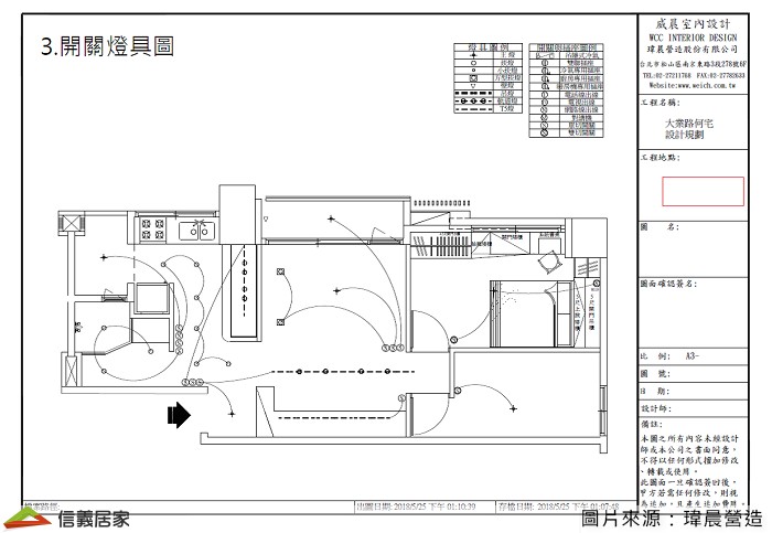 依照屋主的需求及習慣,我們調整了新成屋的插座位置,減少使用延長線的機會,讓室內看起來更簡潔。燈具照明的規畫方向也是一樣,以簡潔俐落為主。捨棄了各式的造型燈具,以白色調的大小圓形嵌燈、方型嵌燈、軌道燈為主。需要重點照明的位置則使用LED調光調色燈具,依照使用的時間及用途,LED調色燈可從白光調到黃光,亮度也可隨時變化!不同情境使用不同色溫照明,非常方便!
