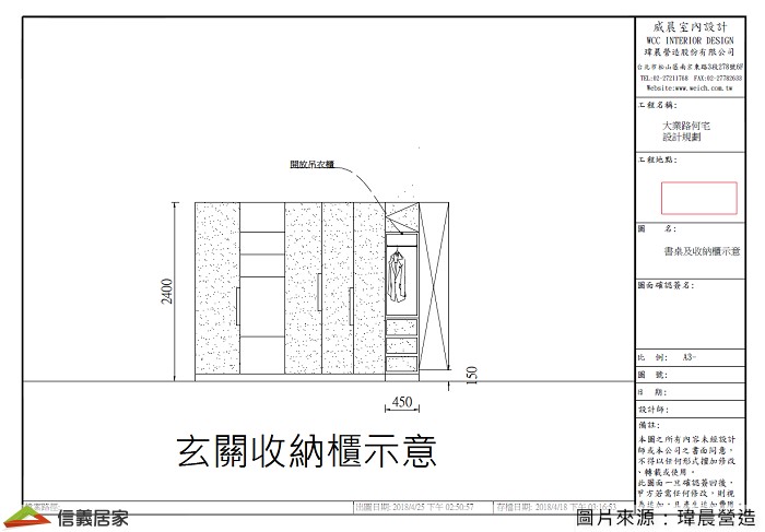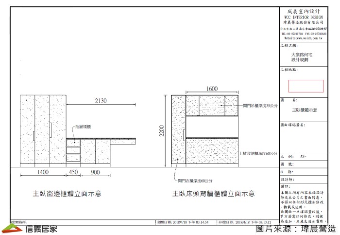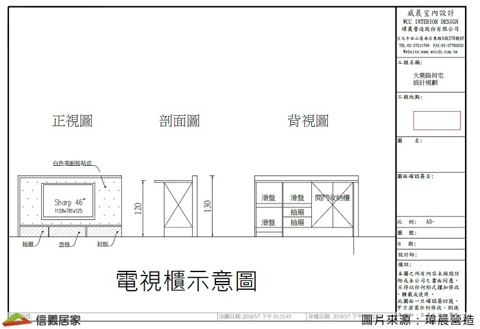 本案為了節省施工時間及費用,所有的櫃體都使用系統櫃施工。其中電視櫃結合電器矮櫃的細節比較多,需要雙方詳細討論。所以在施工前,我們先把想法用立面圖呈現出來,等到前期工程進行時,再以正確的施工圖確認細節。