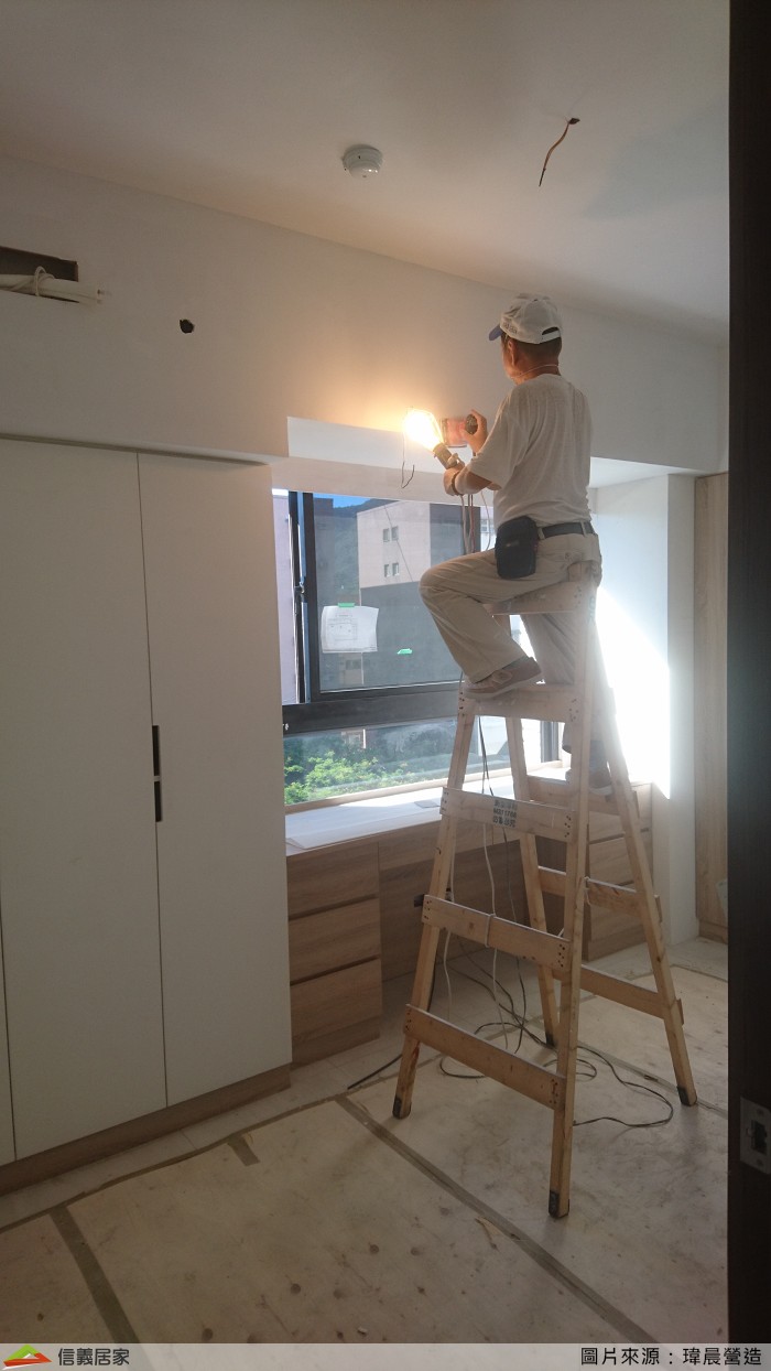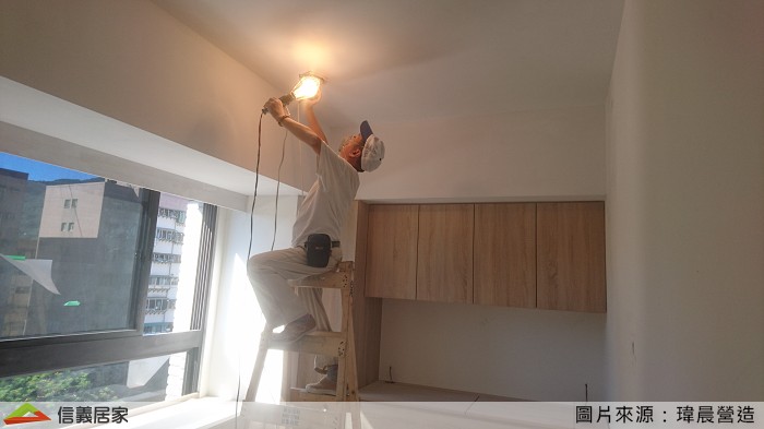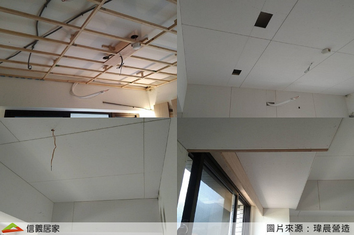 木作工程進行時,也有一些小地方需要特別注意,像是之後會吊掛燈具或窗簾的位置,都需要特別用木心板加強,燈具或窗簾才不會有掉落的危險。各式嵌燈及警報器等,也需要在封板完成後確認是否有開孔出線,重複確認以避免疏失。