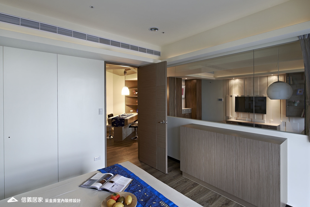 這多半發生在小坪數空間,僅有客廳有自然採光,要不採用開放式設計,讓光源能可直接穿透到每個空間裡,要不就是利用玻璃隔間的方式,將採光引領入私人領域。