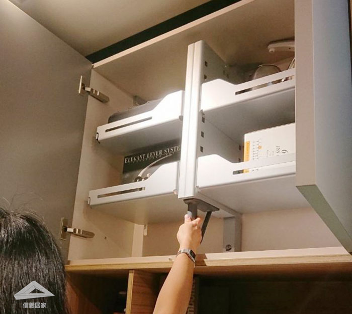 ▲廚房上櫃裝設拉櫃,長輩拿取物品較省力。(圖/唯逸室內裝修設計總監石淑燕提供)