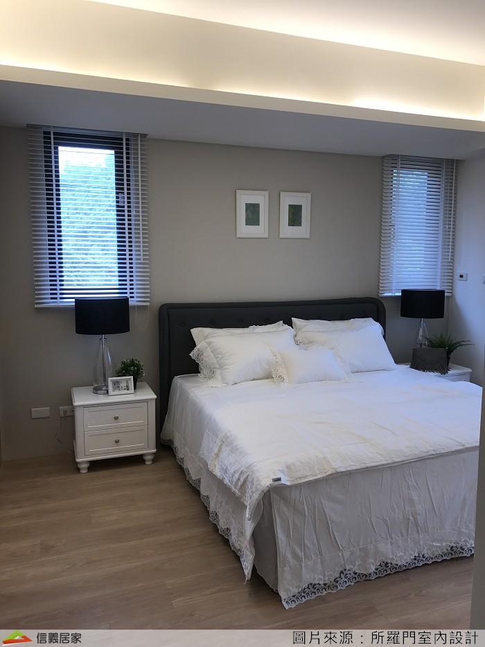 ▲主臥室的床頭主牆採用灰色系,跳色效果顯得簡單俐落又大方。