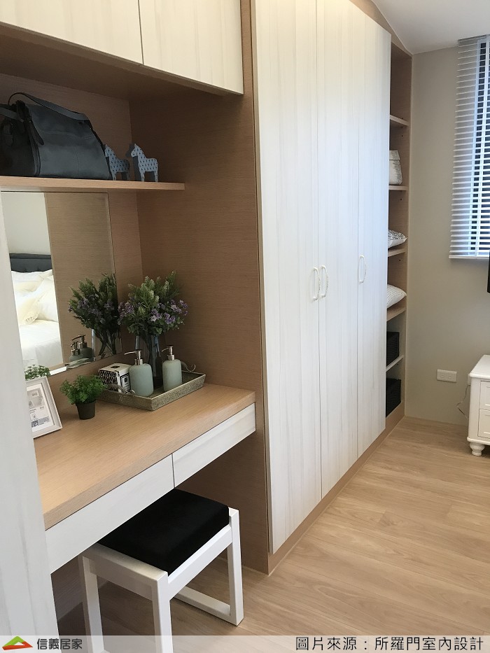 ▲衣櫃使用系統櫃施作,一旁還有為女主人專屬打造的化妝台。