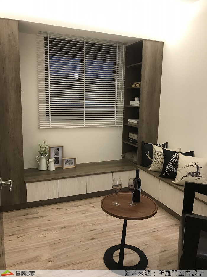 ▲目前的多功能室,未來可能會是小朋友的遊戲空間或書房。窗邊兩側的高書櫃和臥榻底下的抽屜設計,大大滿足收納上的需求。