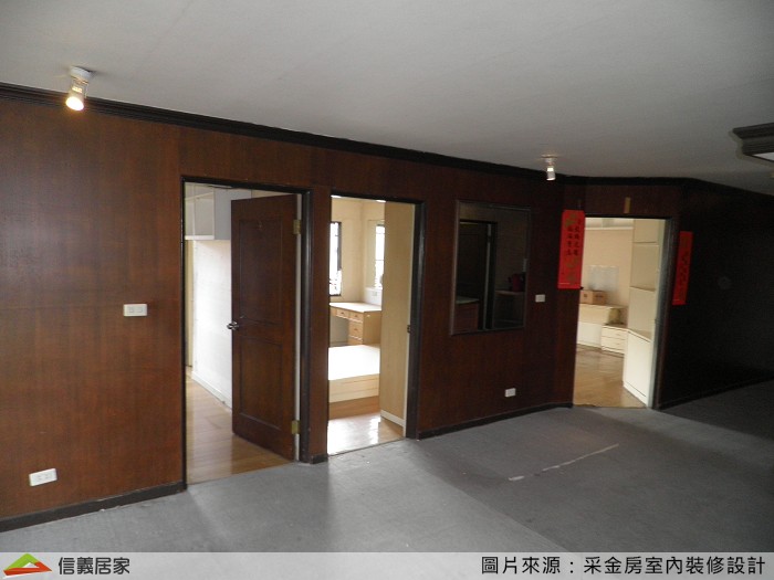 本案的地理環境極佳,但是因屋齡已久,因此有不少地方有漏水及壁癌情況,尤其是八角窗的結構特別嚴重,需要先做結構加強及壁癌處理。其次是因隔間的關係,光線無法進入公共空間。原本的電視牆隔間把客廳最好的八角窗景遮蔽,讓整個空間的採光有一半被遮蔽,十分可惜。為此我們先將所有隔間牆去除,再依屋主需求重新規畫。