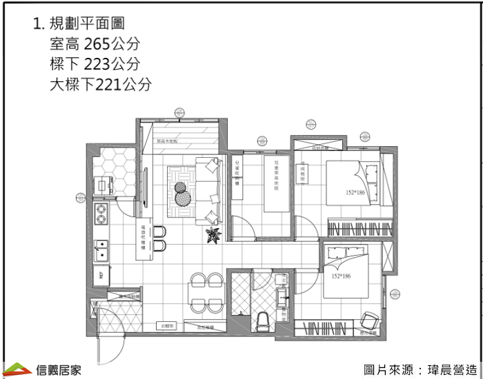 屋內較多梁柱讓人有壓迫感,如何運用空間是個很大的挑戰!