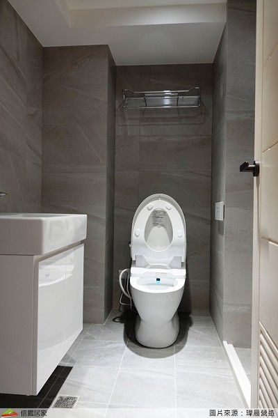 配合新風格改成大面積的磁磚加上暖房機,看起來清爽俐落,也可以避免浴室內發霉。