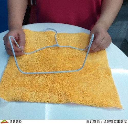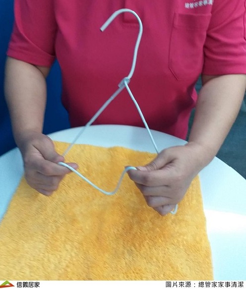 步驟:把衣架下端拗出兩個微凸的波浪形,放上鍋蓋即可。