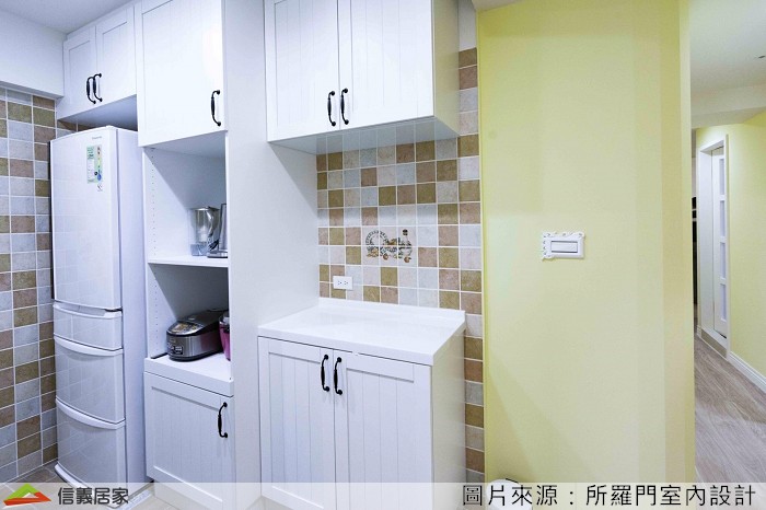 一般鄉村風廚房大都以和諧的色調為主,如白色、裸色或大地色系等,建議也可以加入黃綠藍等明亮的跳色,彷彿徜徉在田園般,將熱情的陽光、盎然的草地重現在空間裡,視覺更活潑看著心情都變好了呢!