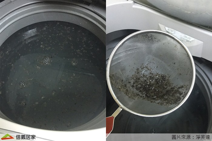 面對一缸子汙水,L小姐飛奔賣場買了多款洗衣機清潔粉,足足讓洗衣機自動清潔洗了兩天,沒想到清衣時還是跑出好多髒髒的殘渣怎麼撈都撈不完(暈~