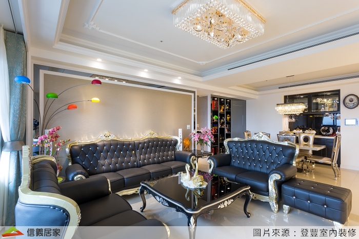 ▲客廳亦可選擇局部翻新亦或使用金銀配色進行穿插,能使客廳多了一抹華麗熱鬧的味道。
