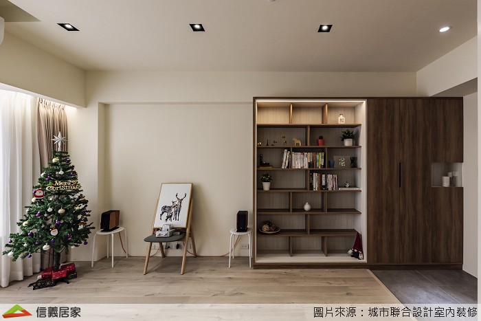 在客廳擺放同屬自然色系的聖誕樹,與奶茶色和諧搭配,使整個家更清爽有活力。