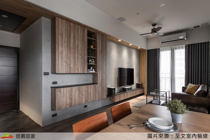 ▲用暖色木材質和些微黑色元素,營造沉穩氛圍,也讓客廳環境更舒適宜人。