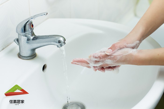 沖:用清水將雙手的泡沫沖洗乾淨。