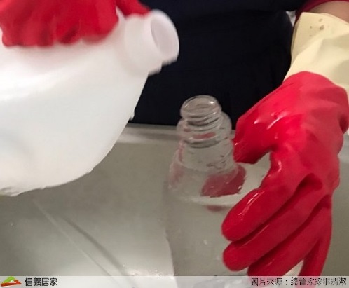 準備材料:口罩、橡膠手套、防水圍裙、漂白水100cc或200cc、清水10公升、四角噴嘴容器