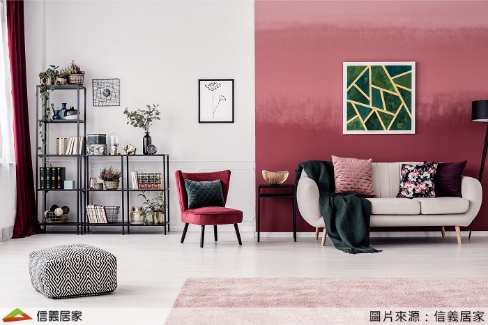 (2)將客廳主牆的一面分為兩個部分