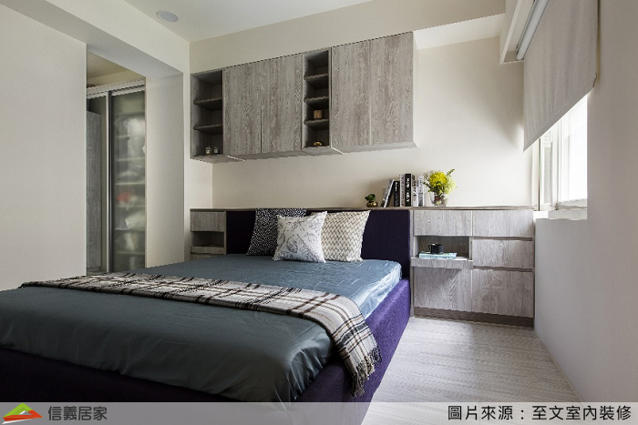 ▲25坪中古屋卻要容納一家六口,光想就覺得擠的不可思議呀!尤其主臥遇到床頭上有梁柱,屋主直喊崩潰啊~好在遇到身經百戰的設計師,靠「客製化家具」一次解決樑壓床和收納不足的問題;將床頭上方改為內嵌式櫃子但不做連接,刻意留白創造輕盈視覺,床頭櫃則以共構櫃體為主臥開啟更多機能空間。