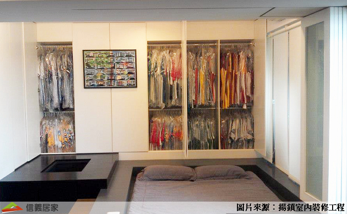▲小宅最怕為了規劃櫃體而產生的壓迫感,所以如何見縫插針將空間轉化為機能收納,就考驗設計師的功力啦! 來~看看這個會忍者隱身術的設計師,將臥室牆面規劃成電影裡才會出現的大型衣櫃,臥床還設置一個可移動式的小桌子任你變化。