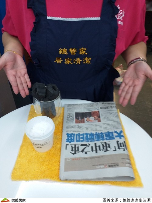 ▼將報紙平鋪於鞋櫃內再放置鞋子,另外在鞋子中塞入報紙也是除濕好方法唷,而木炭有助於除濕,小蘇打有除臭效果,別忘了一起放入鞋櫃內,避免鞋子受潮。