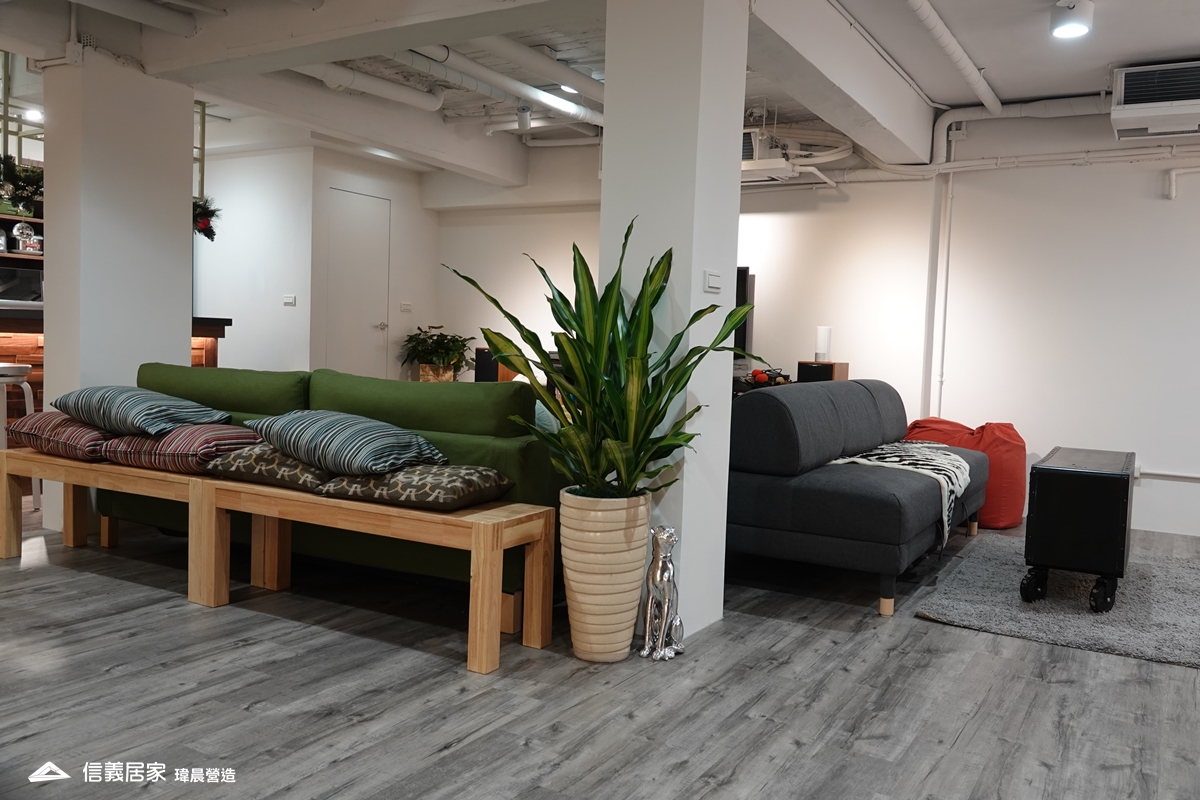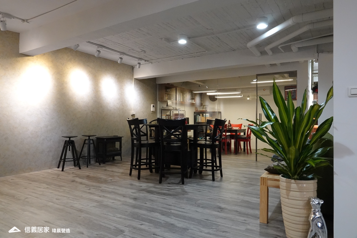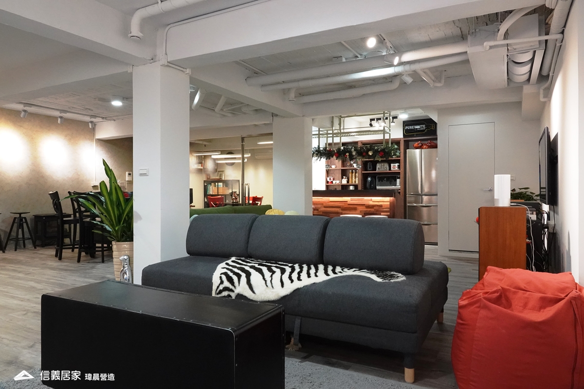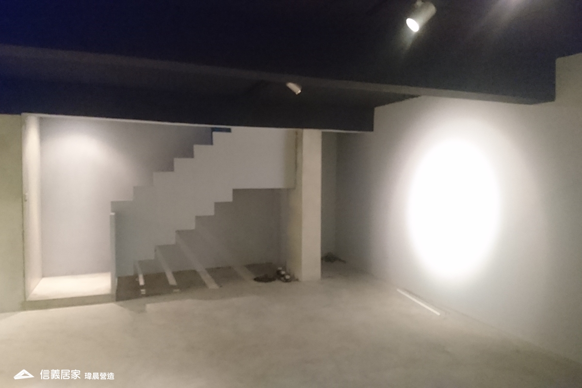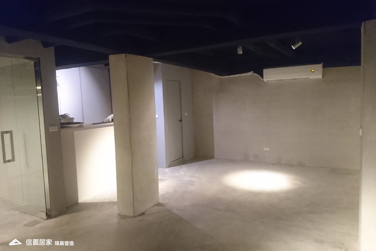 原屋況的高度不足,深色的天花板讓壓迫感更為強烈,開放空間很適合聚會活動但色調太過冷冽,地下室常見的潮溼及通風問題也同樣存在,針對以上幾點我們提出了規畫想法。