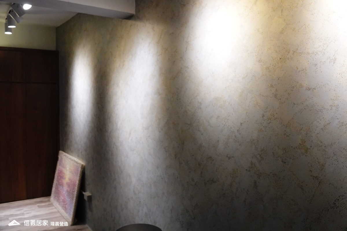 ▼室內主牆我們選用有金屬光澤的特殊塗料,隨著光影的變化各個角度的感受都不一樣,點綴幾幅喜歡的畫就是極具個人風格的特色牆!