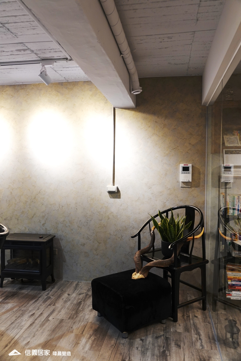 ▼來拍完工照的時候一直很好奇,為什麼在可以綜觀全場的位置放了一組單椅並放上獸角及盆栽?問了陳先生才知道,早年父親是做獸角加工工廠,這是當年留下來的商品,辛苦了二十幾年,當他可以更寫意的享受人生時,看到獸角提醒他小時候雙親的辛勞栽培,他想幫喜歡熱鬧的父親留一個最棒的位子,一起喝一杯聊聊天,分享人生喜悅…。