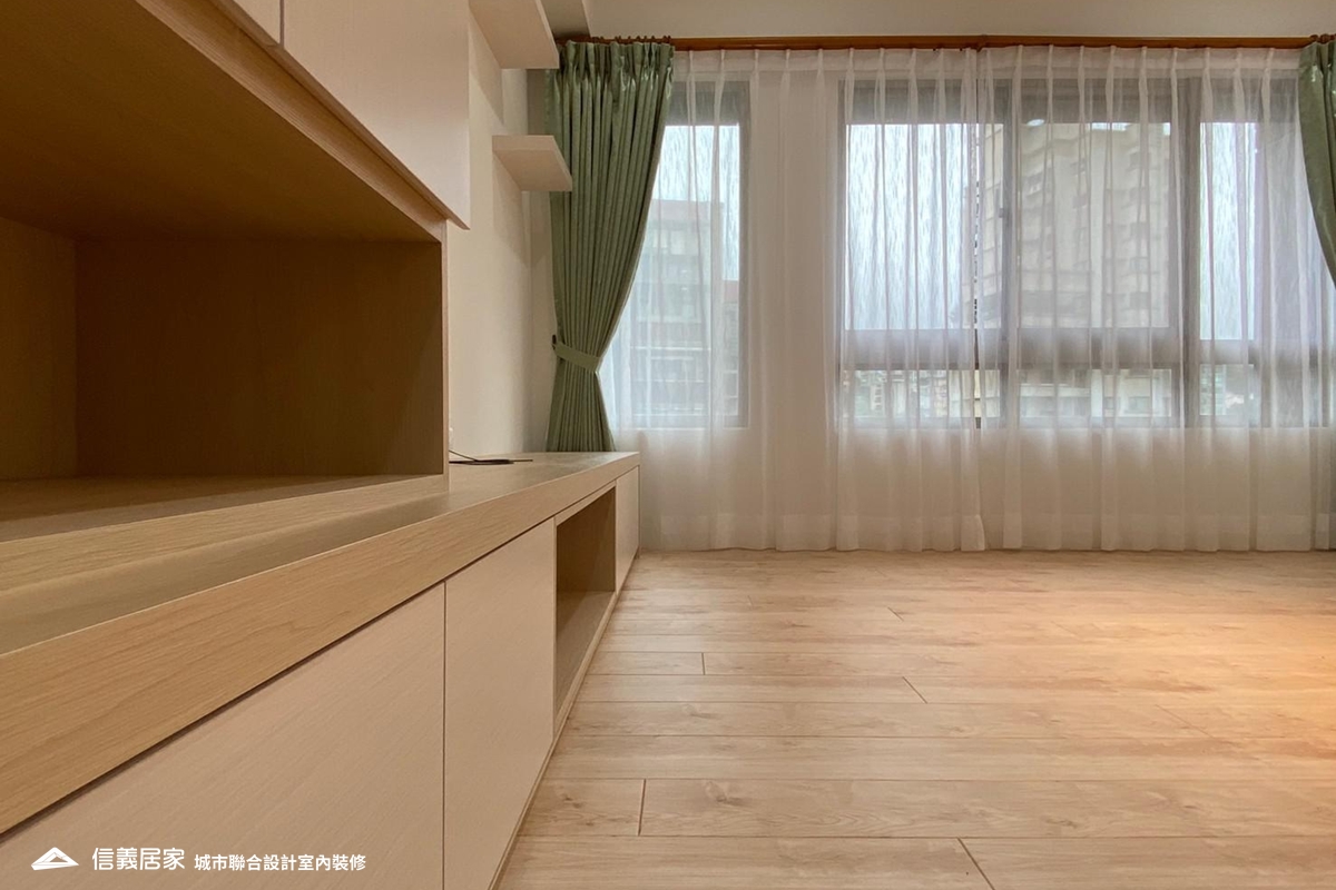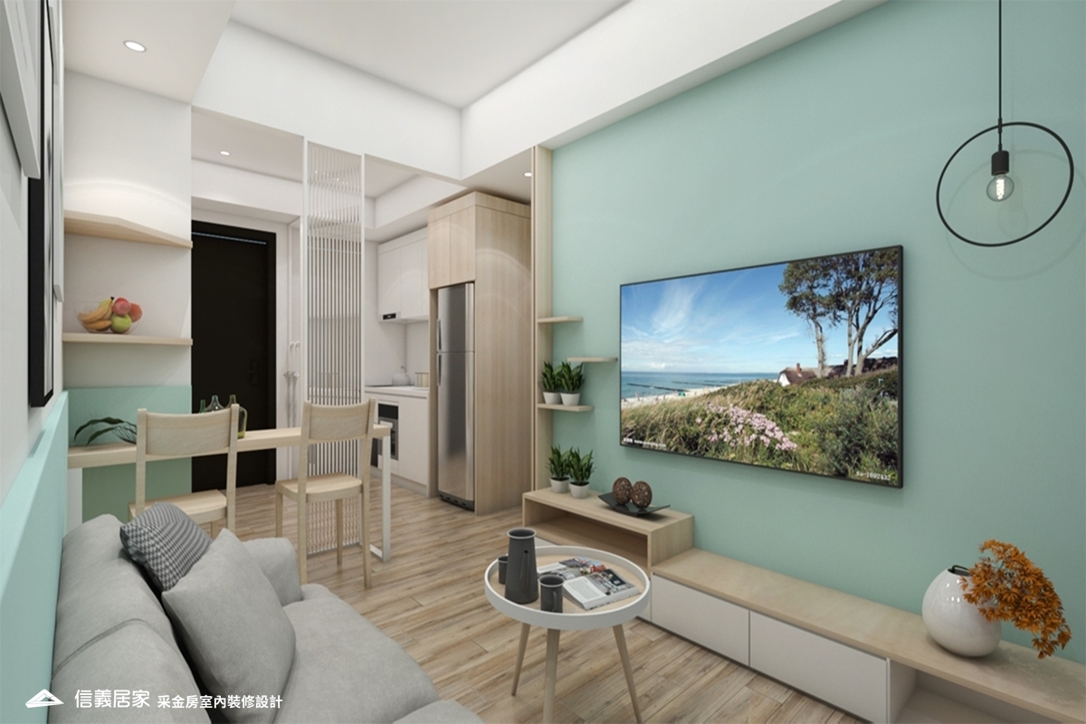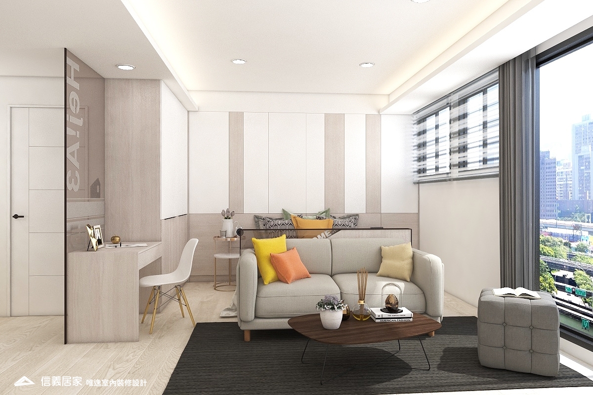 適合小宅的日式風利用線條及家具的極簡化,減輕小坪數的視覺壓迫感,搭配白色系的牆面及木地板,讓整體空間更為輕盈透亮,放大延伸的效果非常棒!