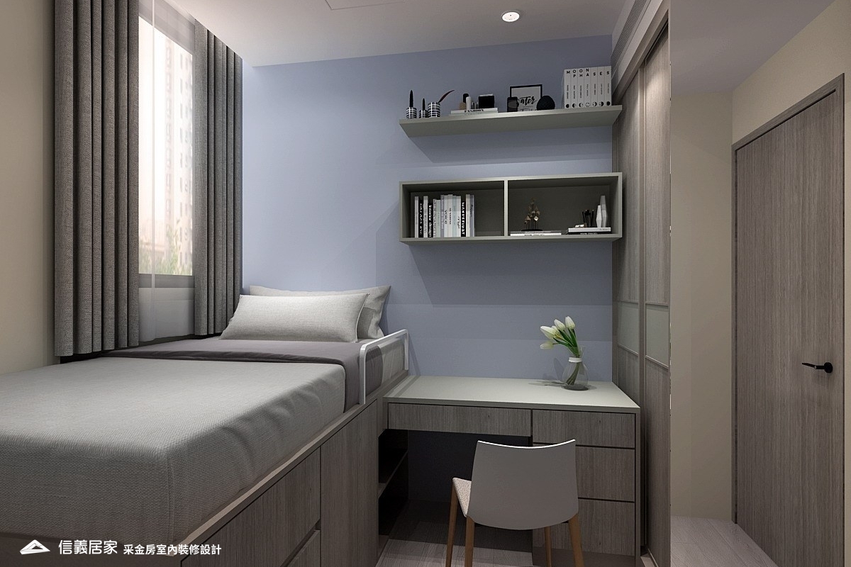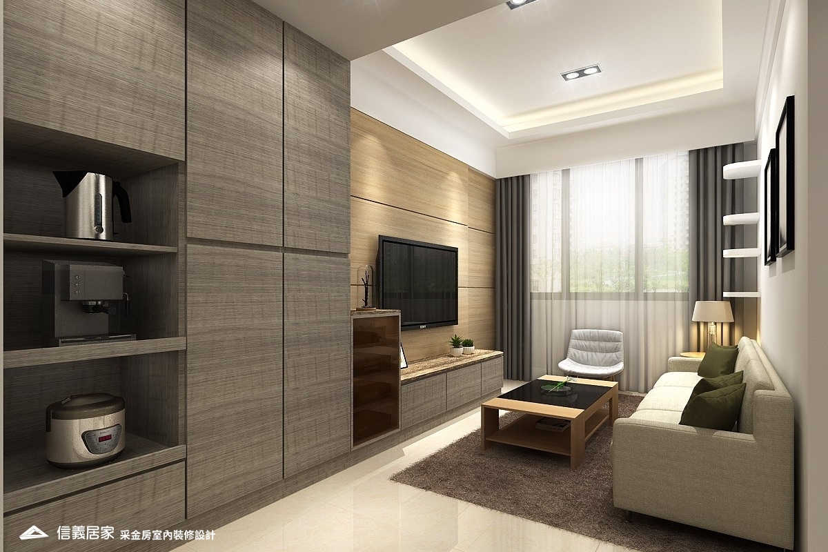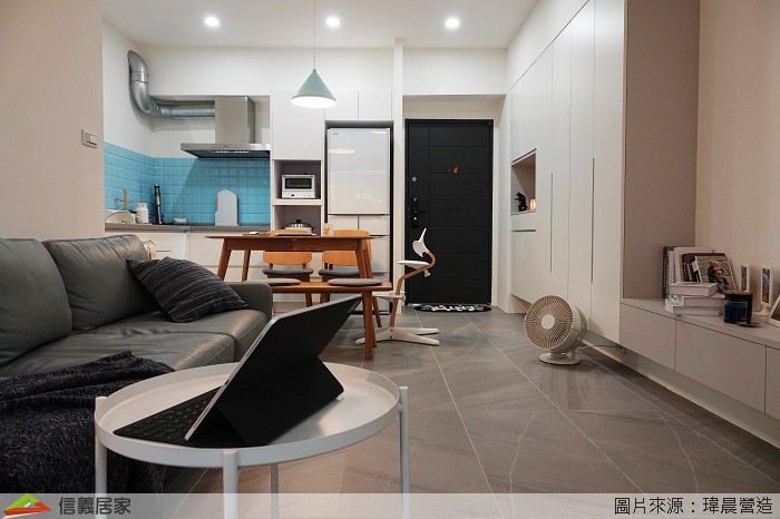 室內面積不到20坪的空間,卻要容納一家四口,收納機能當然不能少!在有限預算內,滿足屋主需求,巧妙運用架高設計及化零為整的櫃體規畫,讓20坪也能擁有三房兩廳的機能。局部設計使用花磚及色彩,為其平凡的居家空間妝點獨具個人風格的活潑氛圍,讓「家」更顯溫馨及舒暢!
