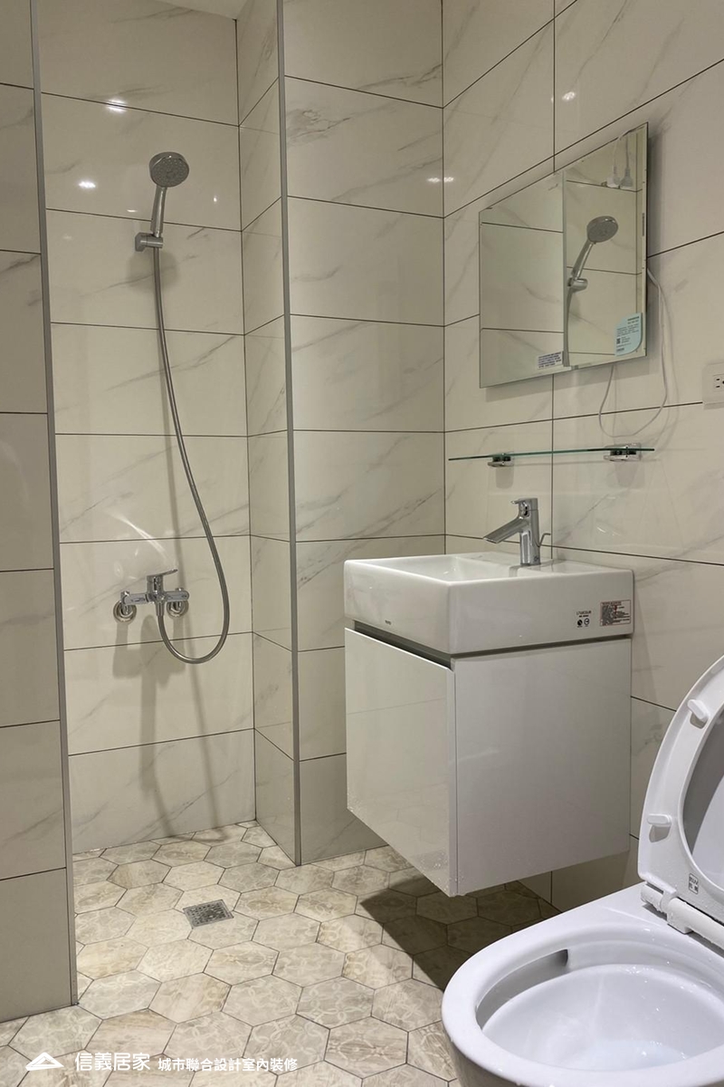 許多人會在衛浴使用大理石紋磚,幾近純白的磚體,與素雅的衛浴設備相得益彰,也因大理石本身的光潤更能顯現出浴室的優美明浄。