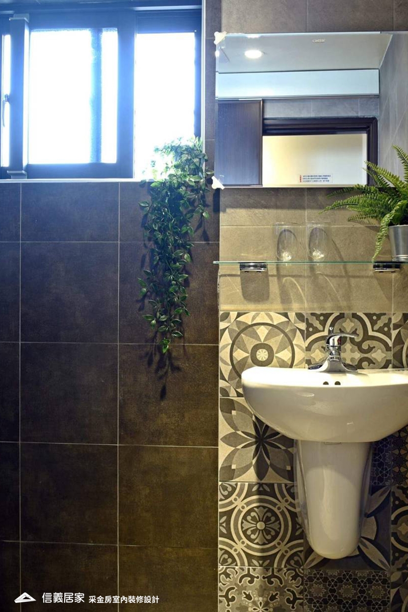 近年來,北歐風及工業風十分受大眾歡迎,帶動選擇花磚、巧克力磚及鐵道磚的設計流行,衛浴靠水的地方容易孳生黴菌,在此貼上花磚,有不同浴室磁磚圖案或長短交錯拼貼,不但能使空間呈現藝術氣息,花磚交錯的紋路也會讓汙垢變不易看見,讓衛浴更具個人風格。