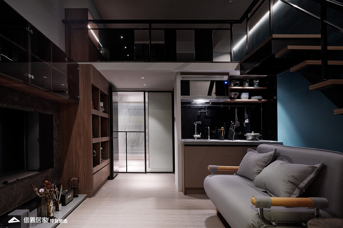 樓中樓夾層區段,俐落空間配置,將視覺延伸,空間顯寬敞,更能作為展示空間。