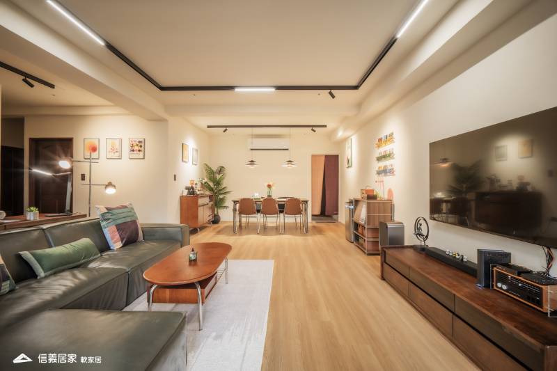 本案為45年老屋翻新設計,屋主一家四口依據生活需求進行格局重整與系統櫃訂製,打造兼具收納與展示機能的溫馨機能宅。全室以暖色調室內設計營造舒適氛圍,客廳、餐廳到臥室皆針對家庭成員習慣量身打造,實現「珍藏生活意義」的家居理念。