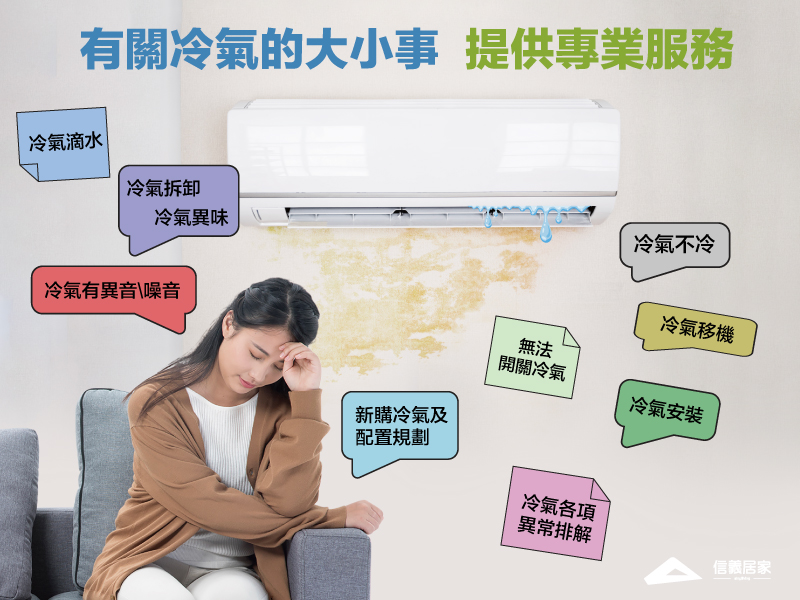 裝潢後冷氣不冷、異味或漏水?信義居家提供冷氣保養、檢修及安裝服務,採用先進檢測設備,精準找出冷氣故障,並附檢測報告,讓您放心使用。