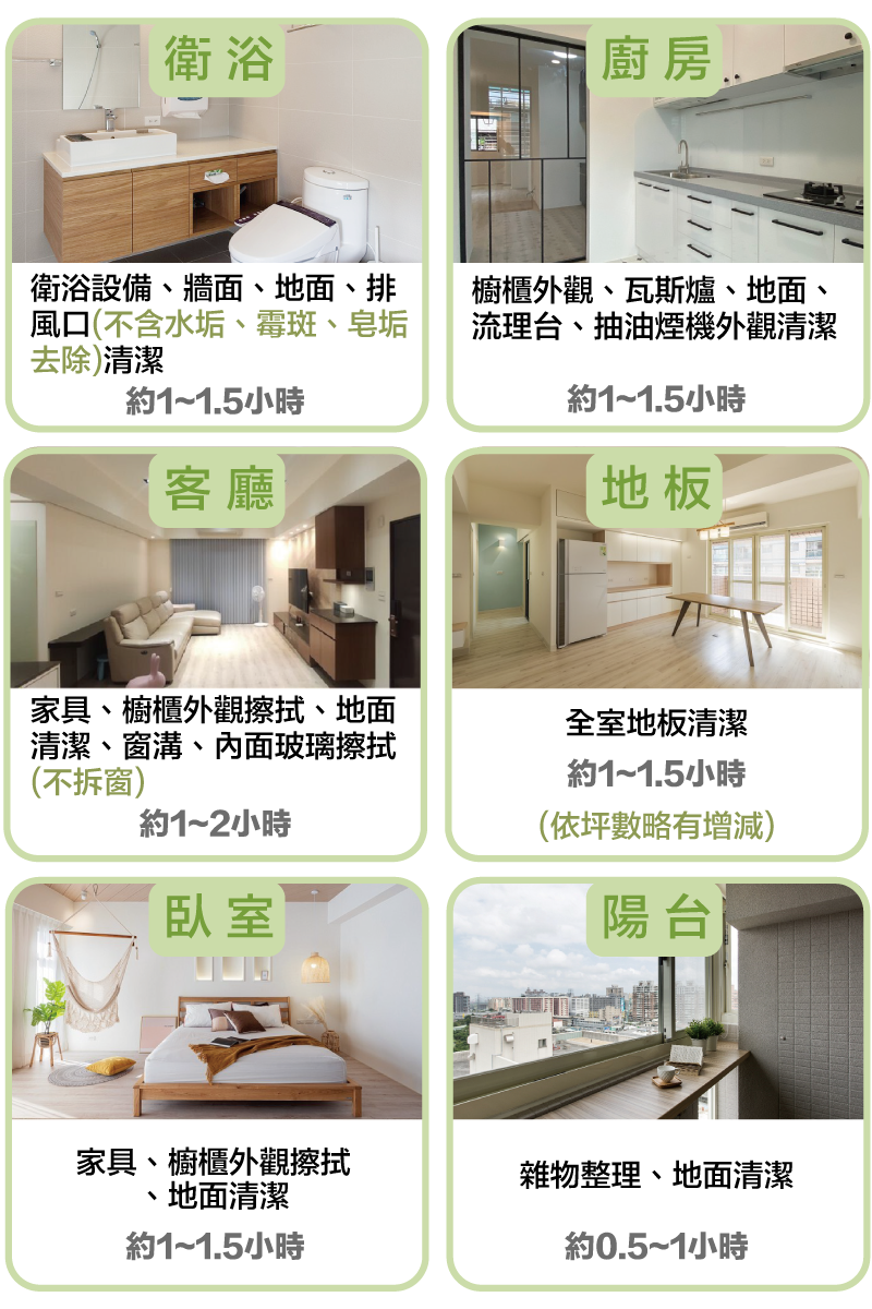 ( 如有全屋清潔需求請選 ▶ 大掃除、裝潢後細清 或 空屋、新成屋清潔 )