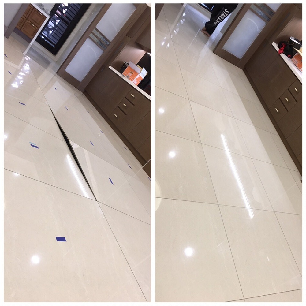 | 更換磁磚 | 不須敲除磁磚及水泥層,直接灌注黏著材料,讓磁磚完美貼合地面或牆面 | 須將損壞甚至所有磁磚及水泥層敲除,才能重新整平鋪設 |