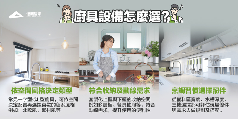 除市面上常見一字型、L型,也有二字形、ㄇ字型或增加中島的類型,歡迎您在諮詢時提供您的需求,服務廠商將為您評估最適宜的廚具設備方案。