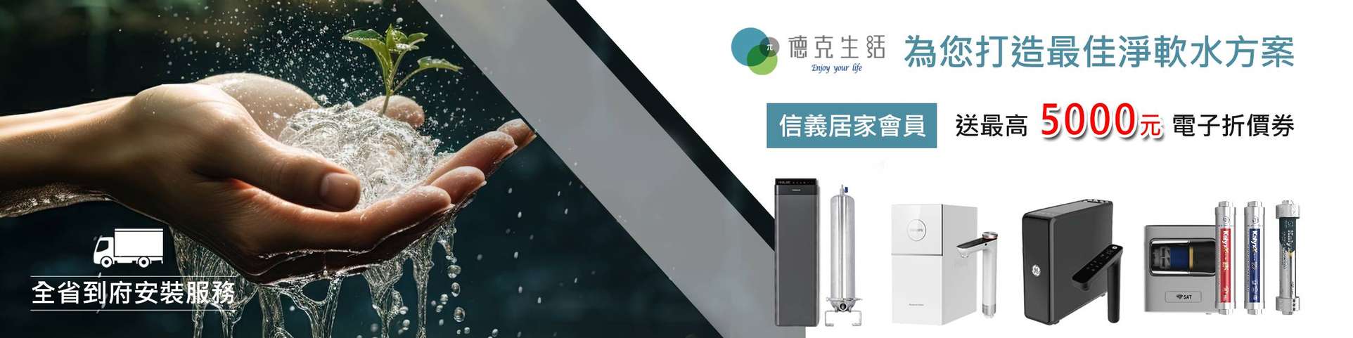 關於飲用水、全戶淨軟水與任何過濾水問題,歡迎諮詢德克生活(LINE:@teclife)【加入後請主動告知您是信義居家會員呦~】