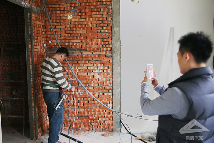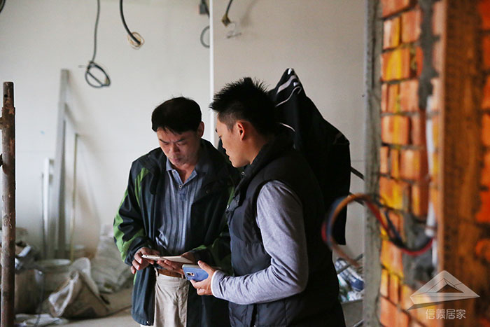 ▲楊家豪拿手機拍攝施工細節,即時傳照片告知客戶裝潢進度。